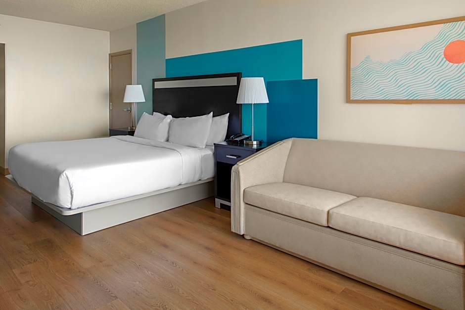 1 King 1 Bdrm Ste Mobility/Hearing Acces is 54 square feet and includes a king-size bed 150-183 width plus balcony, satellite tv , hairdryer, tea and coffee making facilities , safe, and bathrobes and is Wheelchair-accessible.
